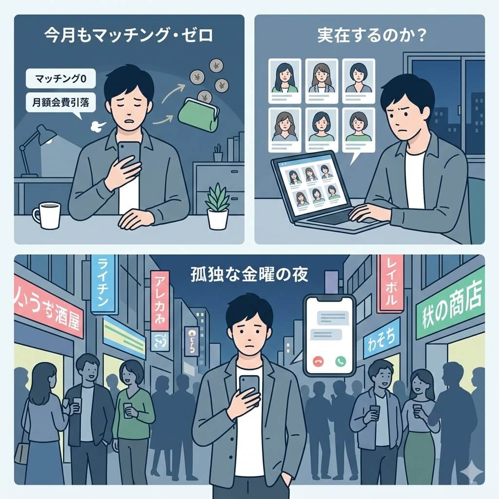 ・毎月数千円の月額料金を払っているのに、マッチングすらしない