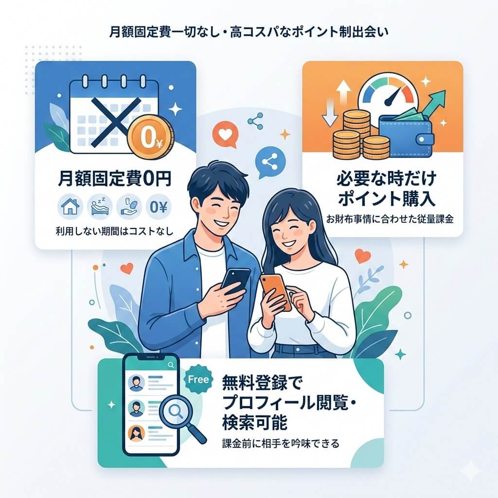 1、無駄な月額費用なし!高コスパな出会い